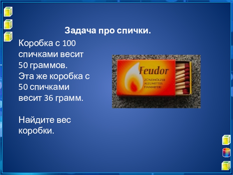 Слайд 11Задача про спички.