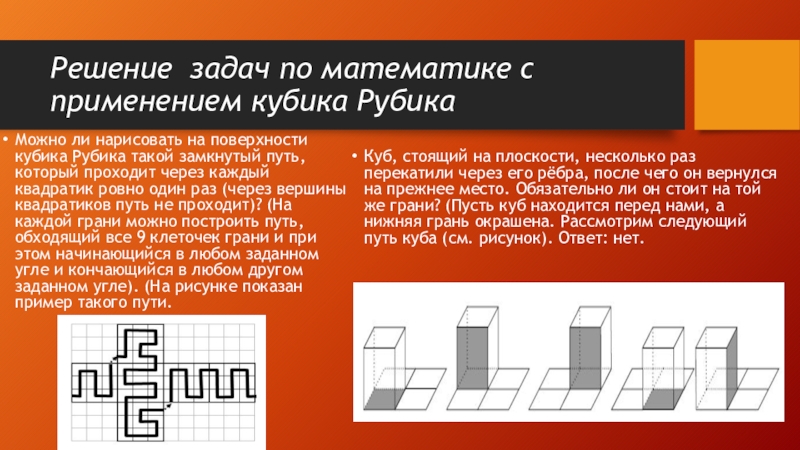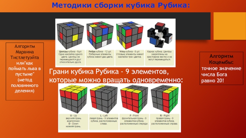 Отобрать математические задачи, в основу решения которых можно положить алгоритм сборки кубика Рубика ;