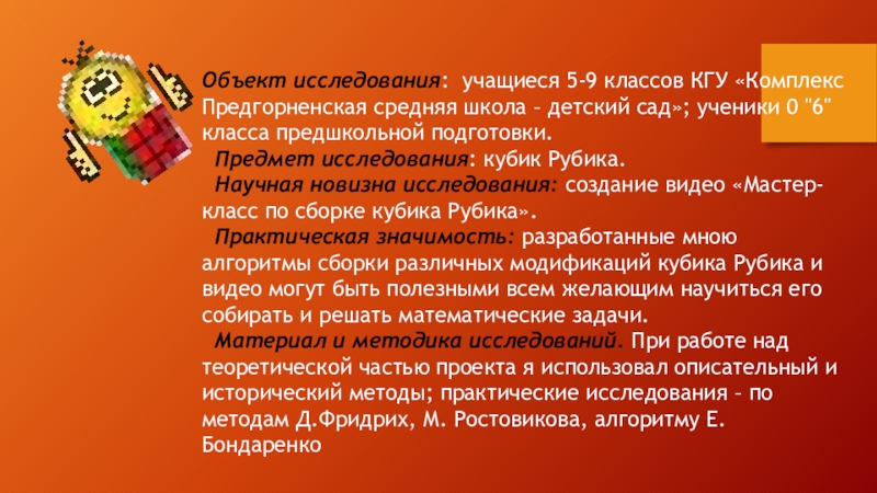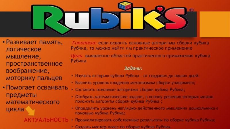 Гипотеза: если освоить основные алгоритмы сборки кубика Рубика, то можно найти им практическое применение