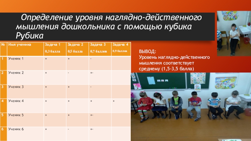 Определить уровень наглядно-действенного мышления дошкольника с помощью кубика Рубика;