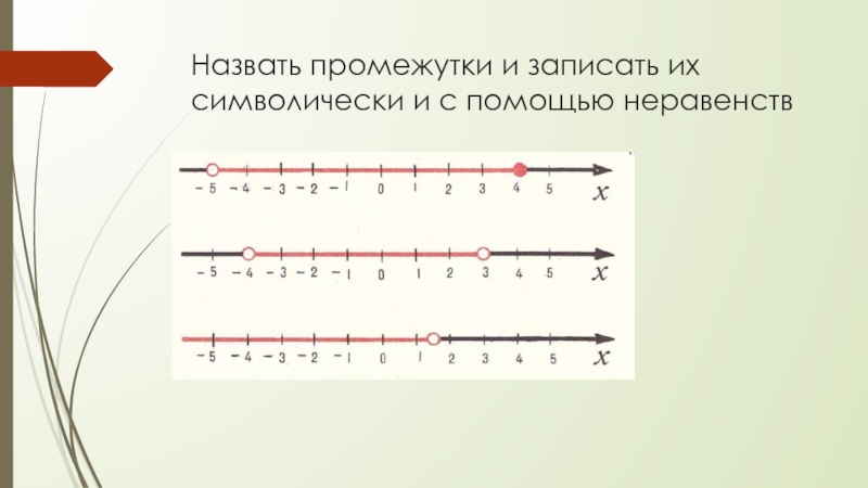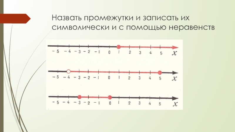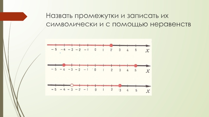 Слайд 2Назвать промежутки и записать их символически и с помощью неравенств