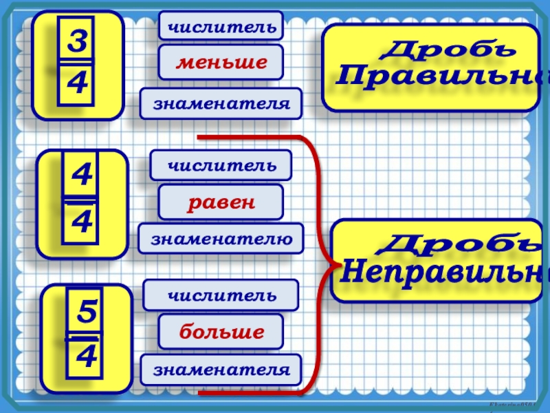 Дробь, в которой числитель равен знаменателю, называют неправильной дробью.