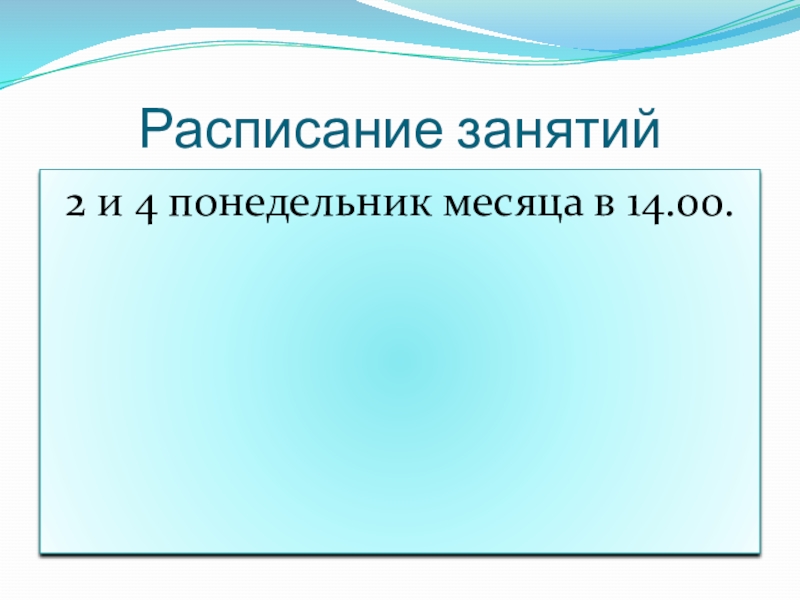 Расписание занятий2 и 4 понедельник месяца в 14.00.