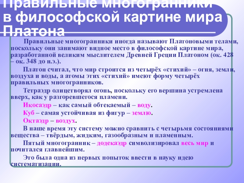 в философской картине мира Платона