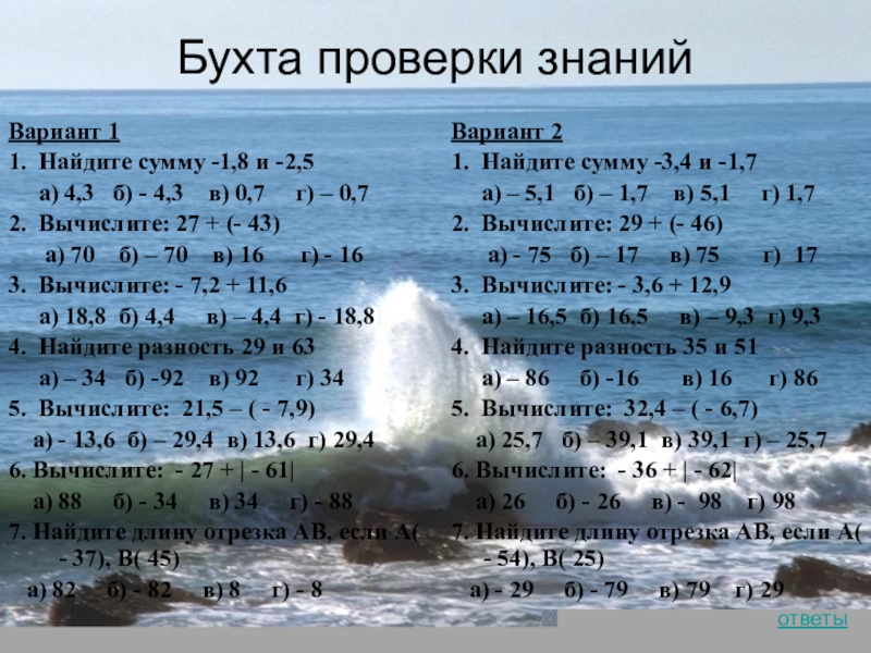 а) – 5,1 б) – 1,7 в) 5,1 г) 1,7