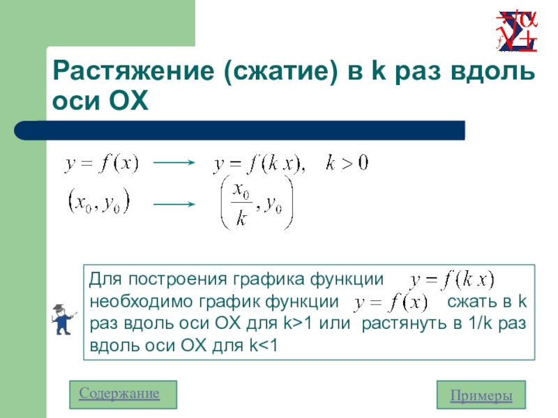 Растяжение (сжатие) в k раз вдоль оси OXСодержаниеПримеры
