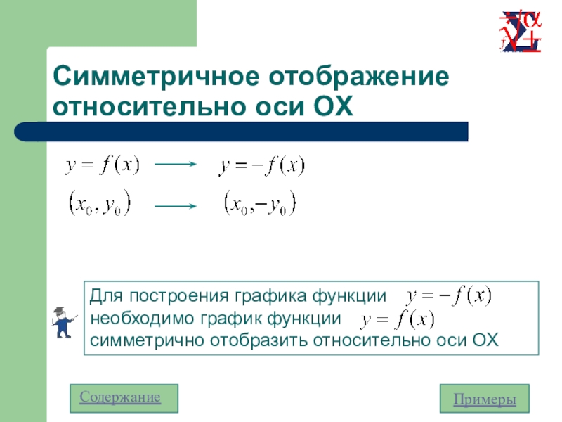 Симметричное отображение относительно оси OXСодержаниеПримеры