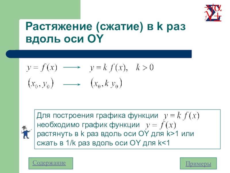Растяжение (сжатие) в k раз вдоль оси OYСодержаниеПримеры