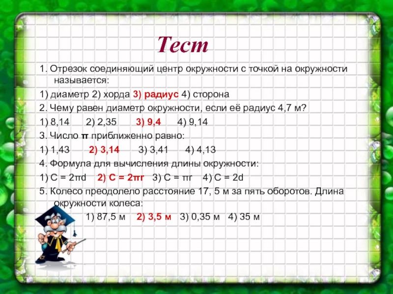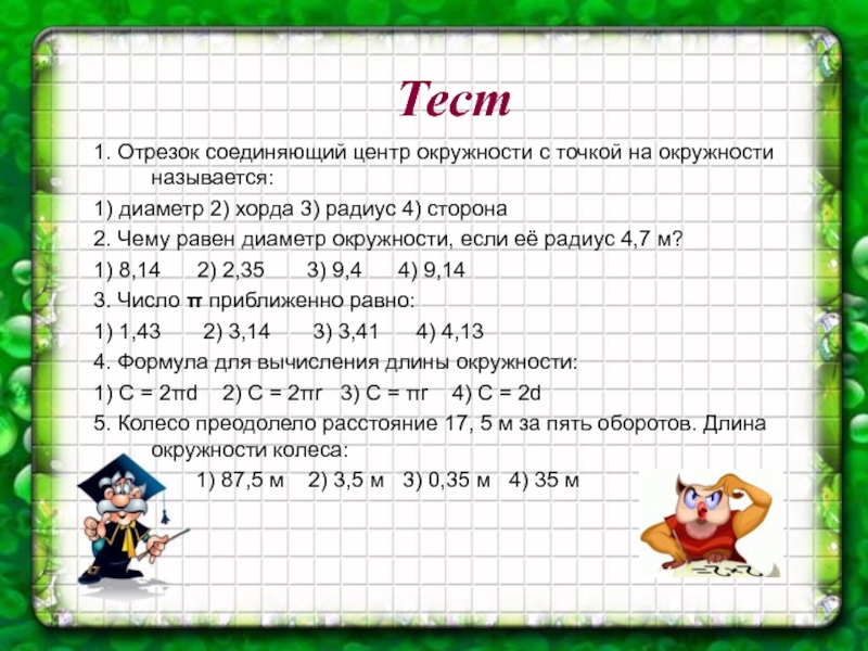 2. Чему равен диаметр окружности, если её радиус 4,7 м?