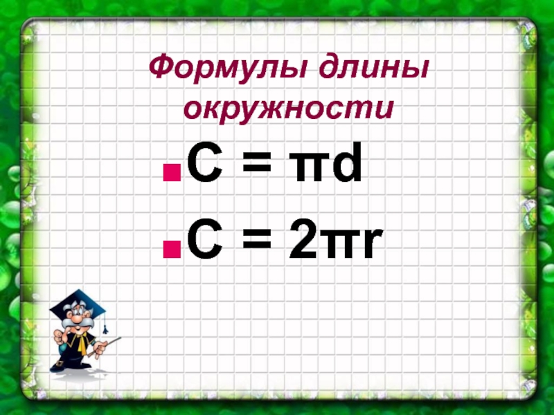 1) С = 2πd 2) C = 2πr 3) C = πr 4) C = 2d