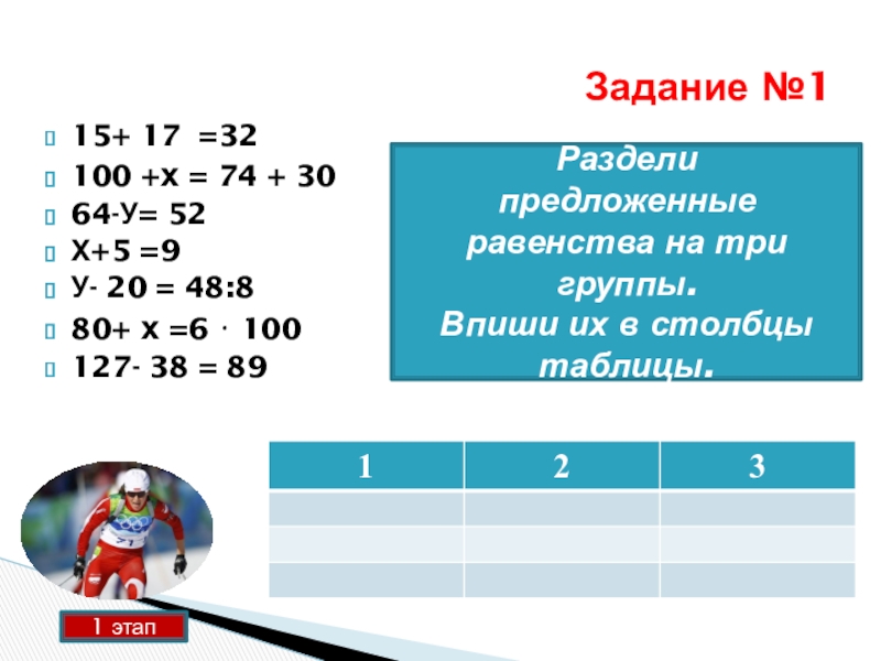 предложенные равенства на три группы.