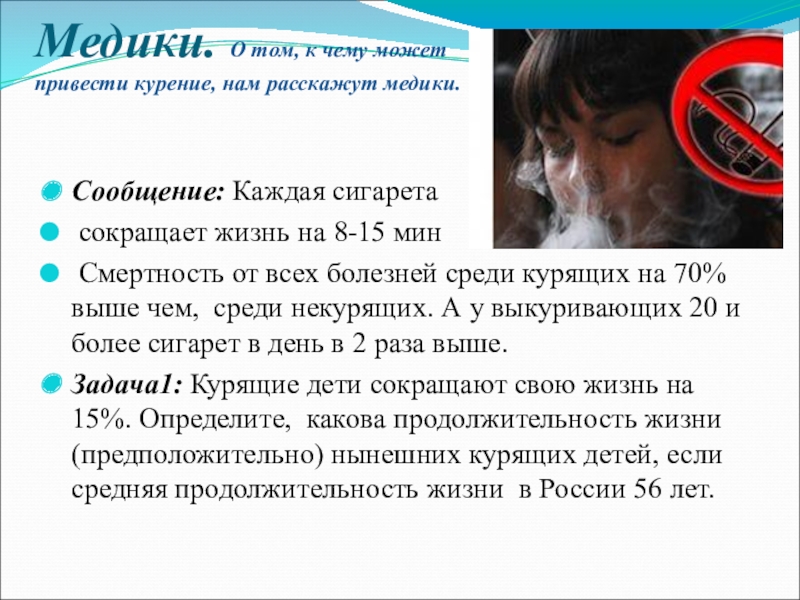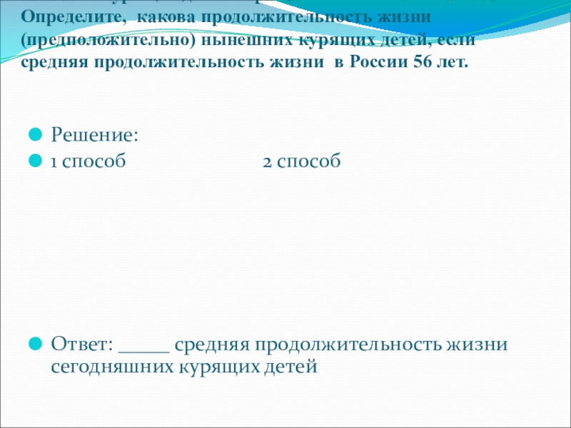 Ответ: _____ средняя продолжительность жизни сегодняшних курящих детей