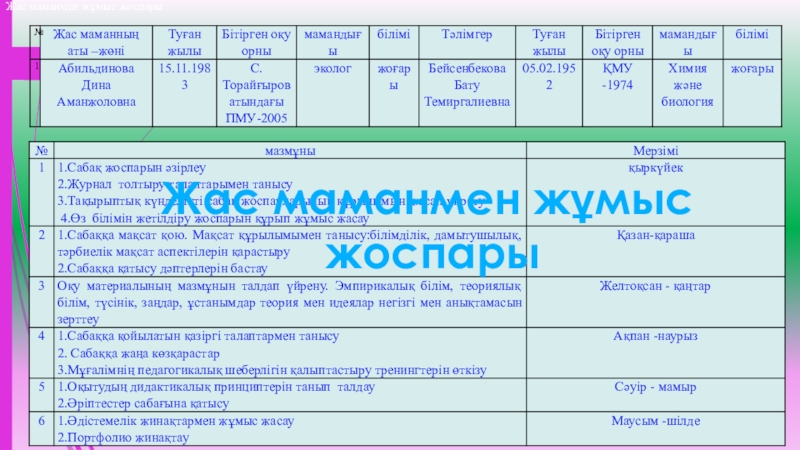 Жас маманмен жұмыс жоспарыЖас маманмен жұмыс жоспары