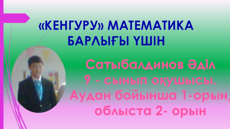 «Кенгуру» математика барлығы үшінСатыбалдинов Әділ 9 - cынып оқушысы. Аудан бойынша 1-орын, облыста 2- орын