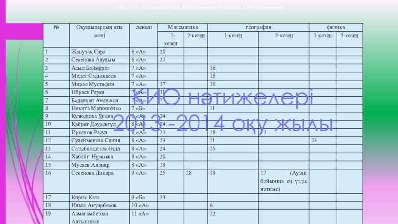 2013-2014 оқу жылындағы ЖМЦ пәндері бойынша КИО нәтижелеріКИО нәтижелері 2013 -2014 оқу жылы