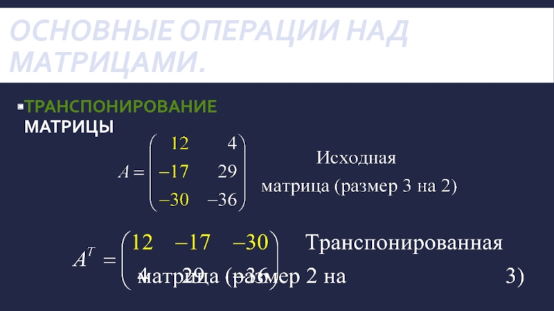 ОСНОВНЫЕ ОПЕРАЦИИ НАД МАТРИЦАМИ.
