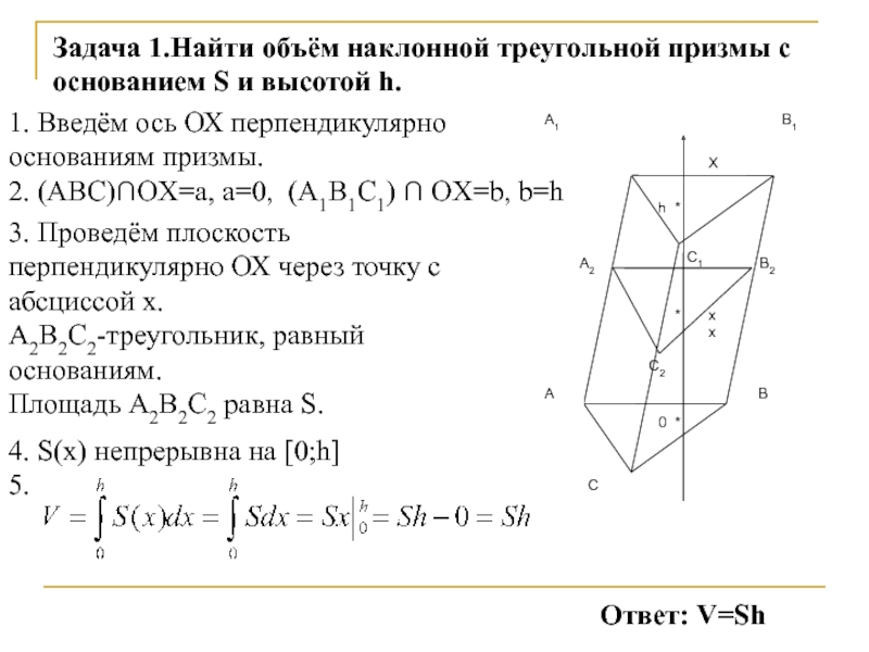 1. Введём ось ОХ перпендикулярно основаниям призмы.