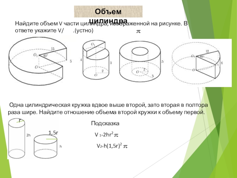 Одна цилиндрическая кружка вдвое выше второй, зато вторая в полтора раза шире. Найдите отношение объема второй кружки к объему первой.