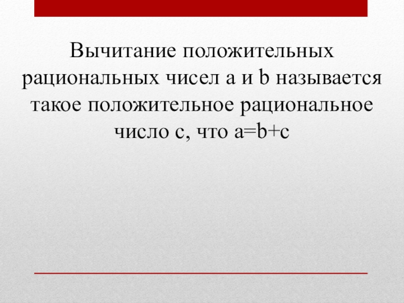 Слайд 19Вычитание положительных рациональных чисел a и b называется такое положительное рациональное