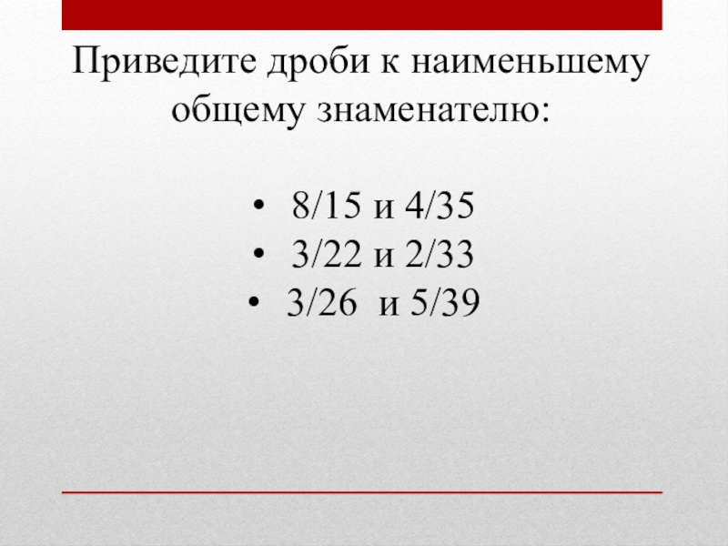 Слайд 8Приведите дроби к наименьшему общему знаменателю: