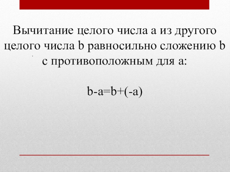 Вычитание целого числа а из другого целого числа b равносильно сложению