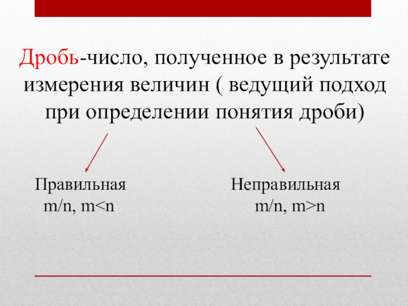 Слайд 3Дробь-число, полученное в результате измерения величин ( ведущий подход при определении