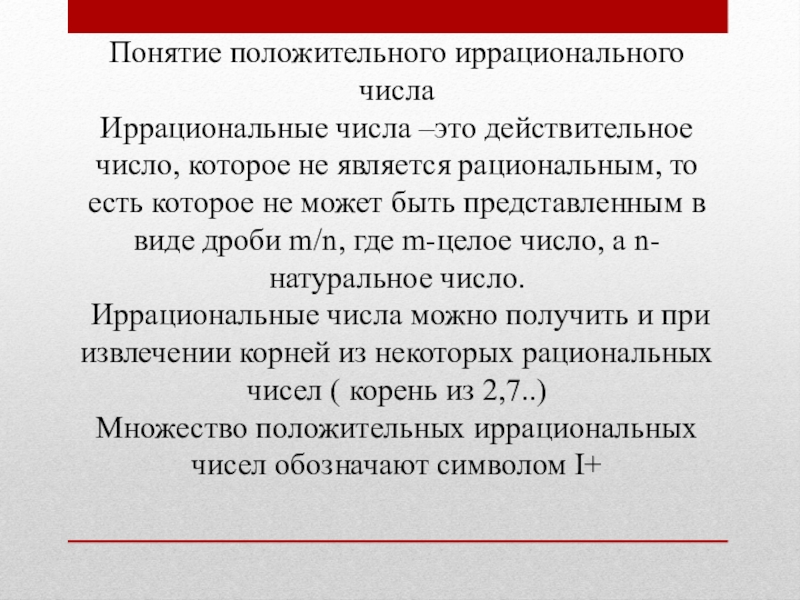 рациональным, то есть которое не может быть представленным в виде дроби m/n, где m-целое число, а n-натуральное число.