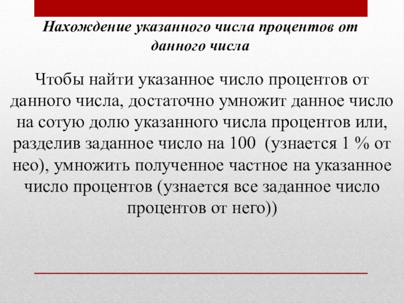 Слайд 31Чтобы найти указанное число процентов от данного числа, достаточно умножит данное