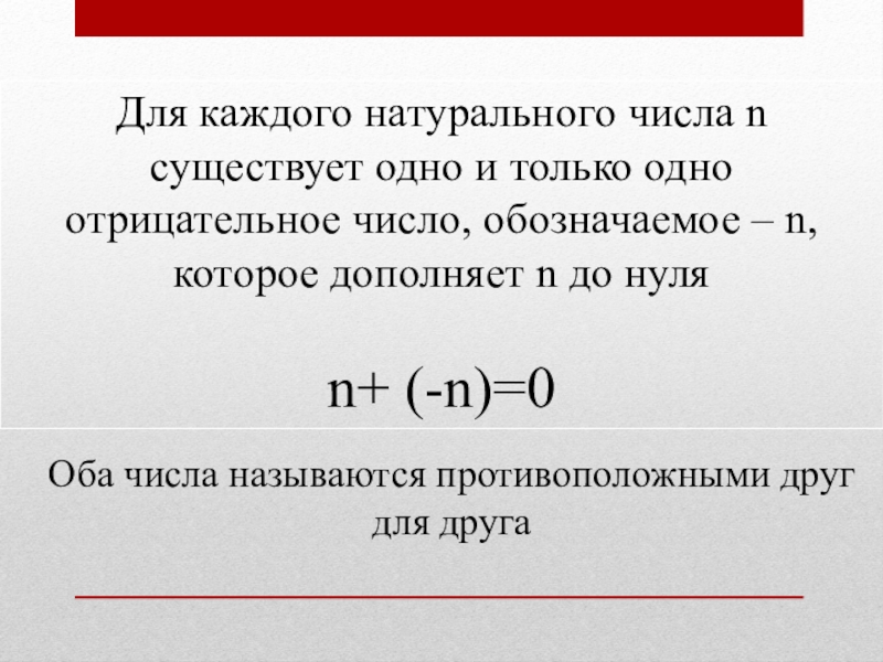 Слайд 34Для каждого натурального числа n существует одно и только одно отрицательное