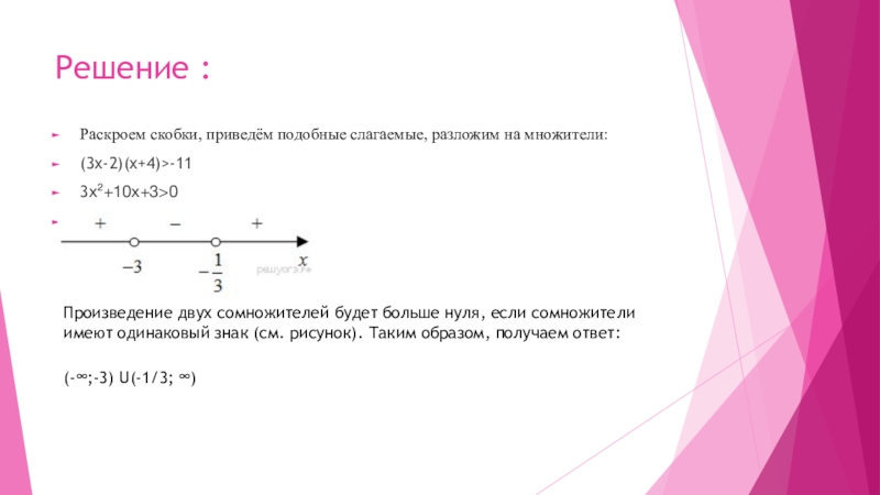 будет больше нуля, если сомножители имеют одинаковый знак (см. рисунок). Таким образом, получаем ответ: