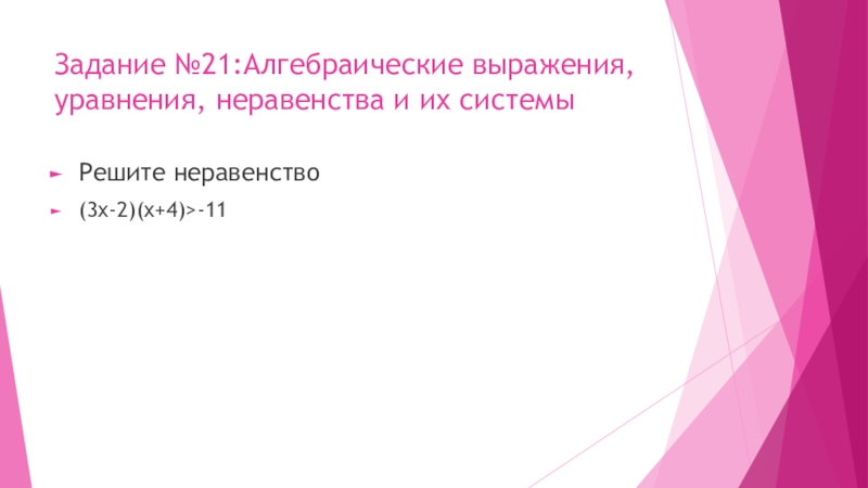 Слайд 2Задание №21:Алгебраические выражения, уравнения, неравенства и их системы