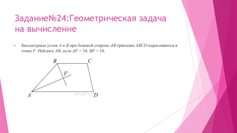 Слайд 8Задание№24:Геометрическая задача на вычисление