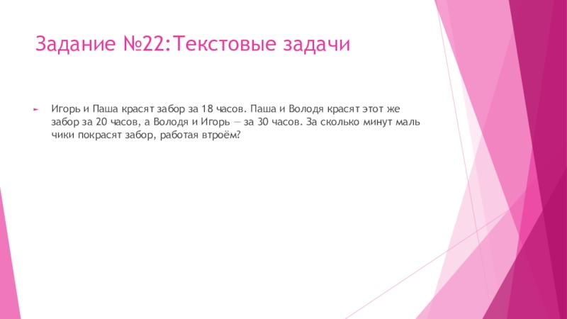 За один час Игорь и Паша красят 1/18 забора, Паша и