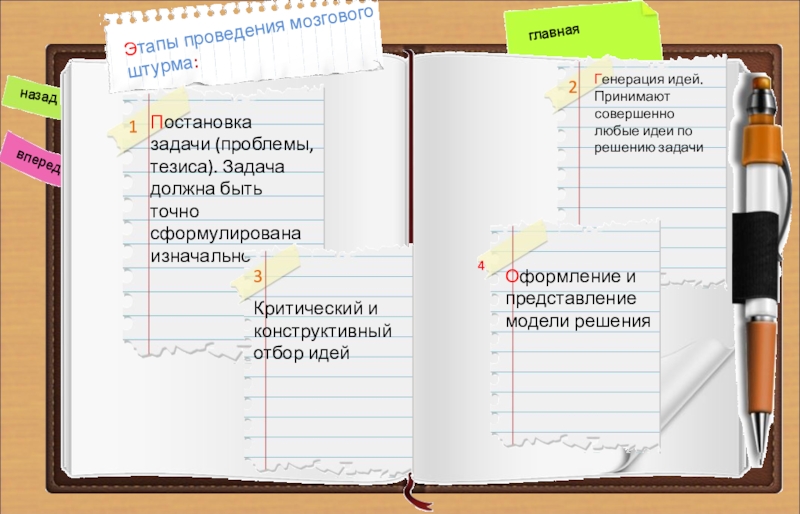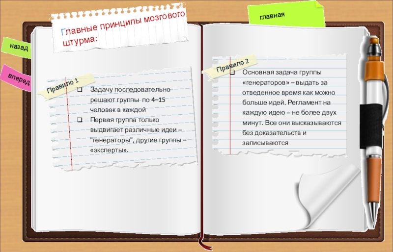 Основная задача группы «генераторов» – выдать за отведенное время как можно больше идей. Регламент на каждую идею – не более двух минут. Все они высказываются без доказательств и записываются