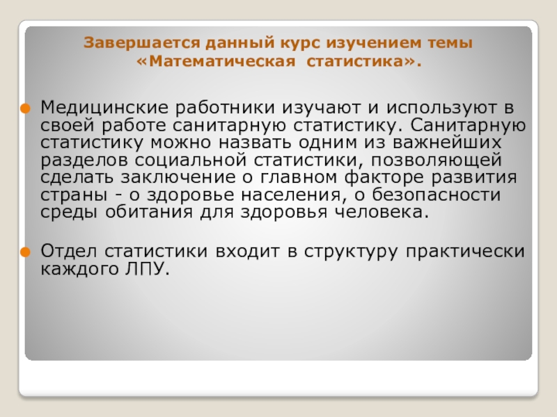 Завершается данный курс изучением темы «Математическая статистика».