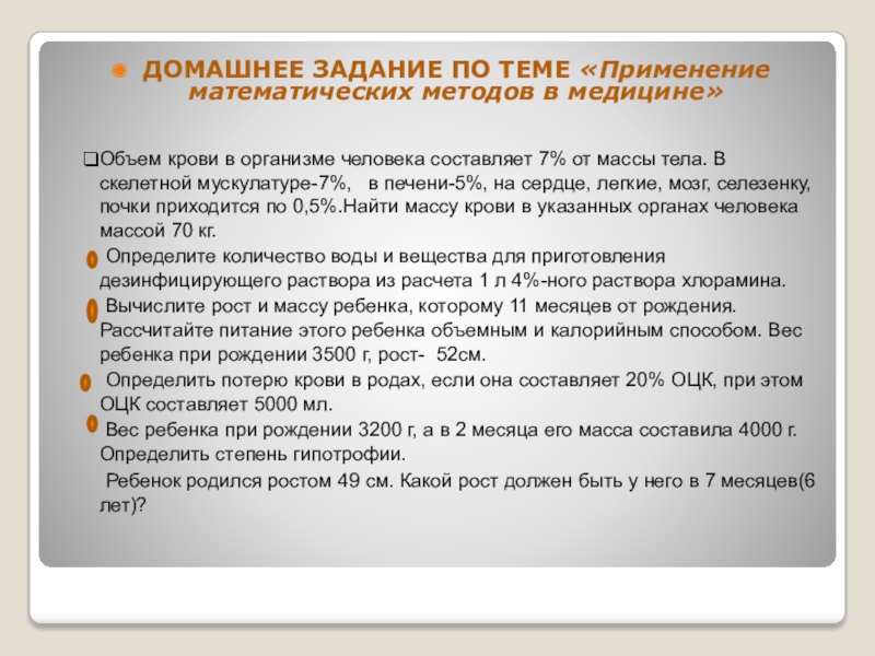 ДОМАШНЕЕ ЗАДАНИЕ ПО ТЕМЕ «Применение математических методов в медицине»