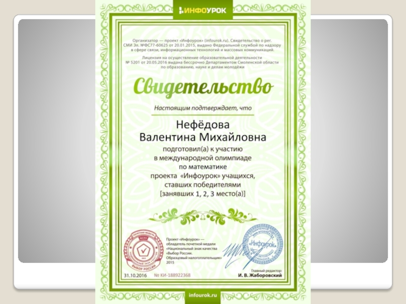 Преподаватель : Нефёдова В.М.