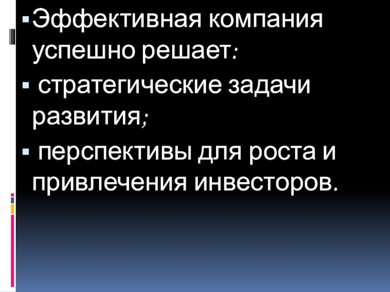 Эффективная компания успешно решает: стратегические задачи развития; перспективы для роста и привлечения инвесторов.