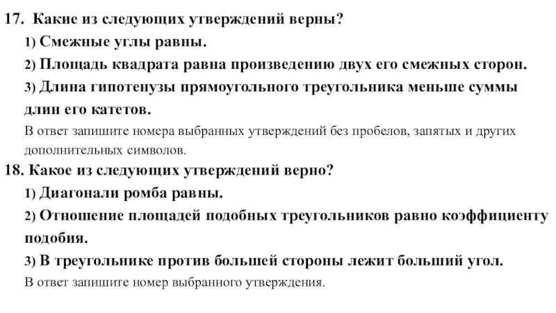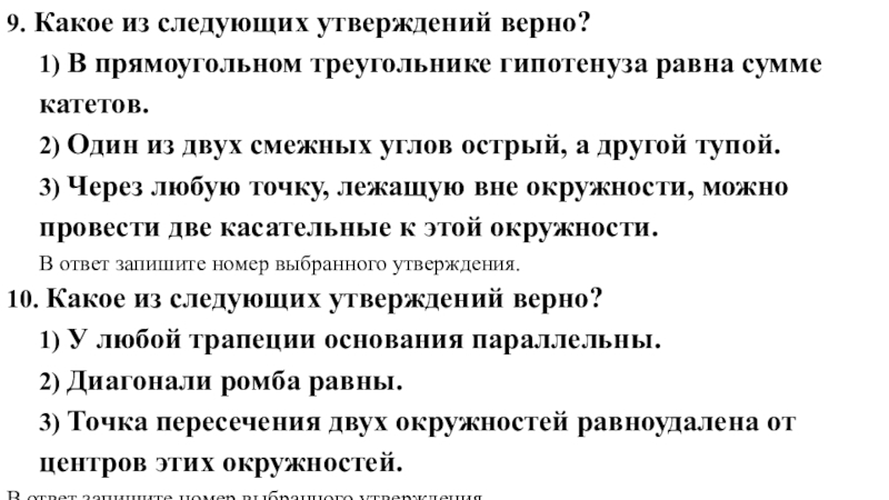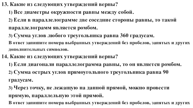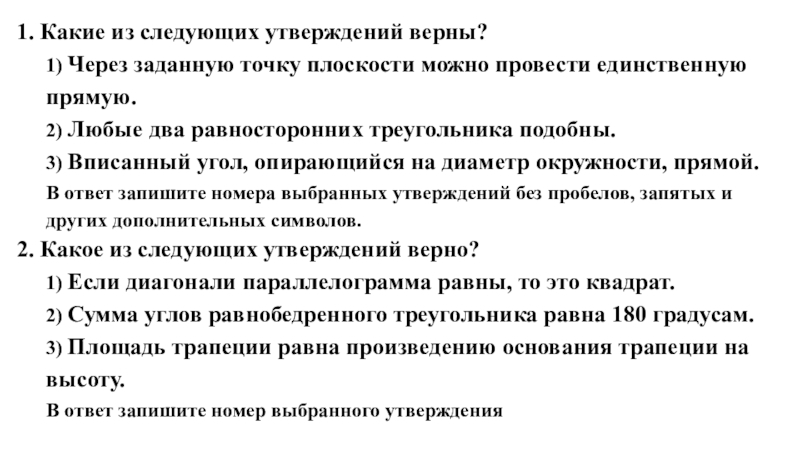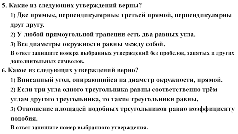 В ответ запишите номера выбранных утверждений без пробелов, запятых и других дополнительных символов.