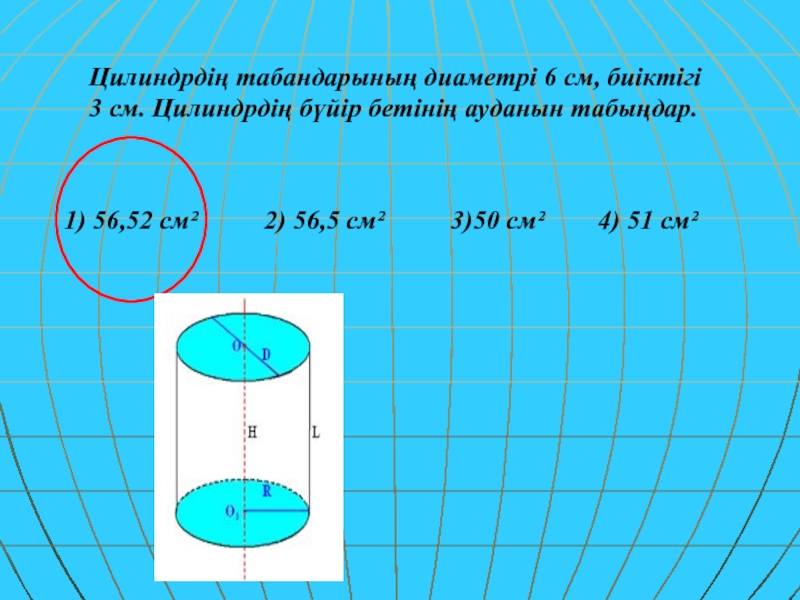 1) 56,52 см² 2) 56,5 см² 3)50 см² 4) 51 см²