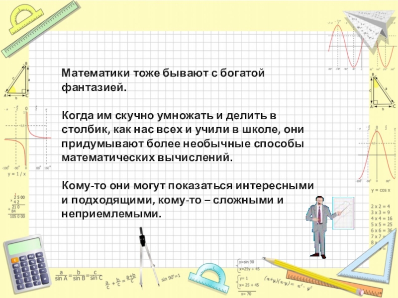 Слайд 3Математики тоже бывают с богатой фантазией.