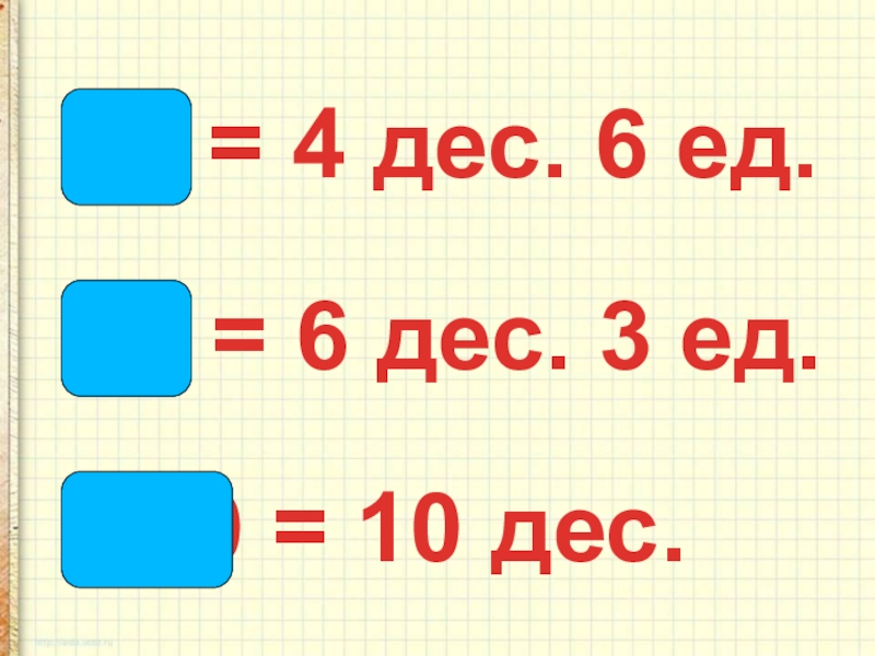 46 = 4 дес. 6 ед.63 = 6 дес. 3 ед.100 = 10 дес.