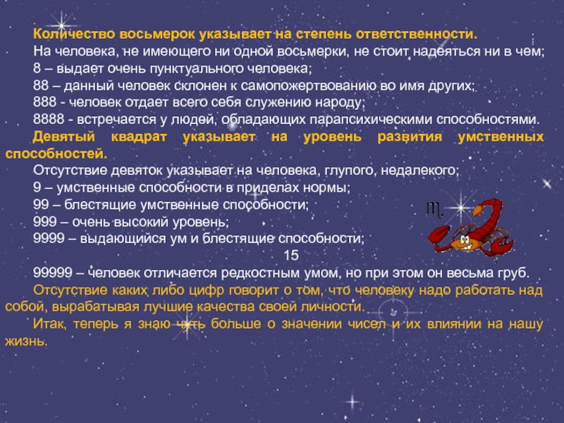 Количество восьмерок указывает на степень ответственности.