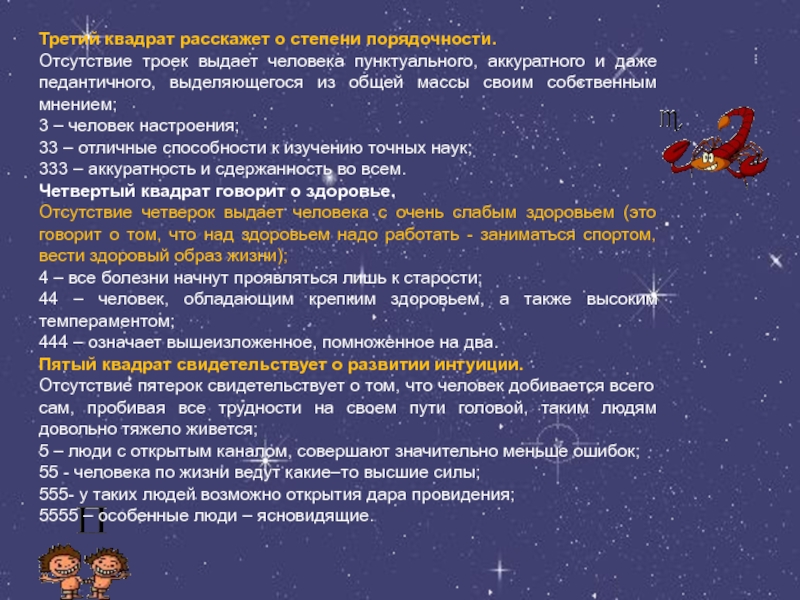 Четвертый квадрат говорит о здоровье.