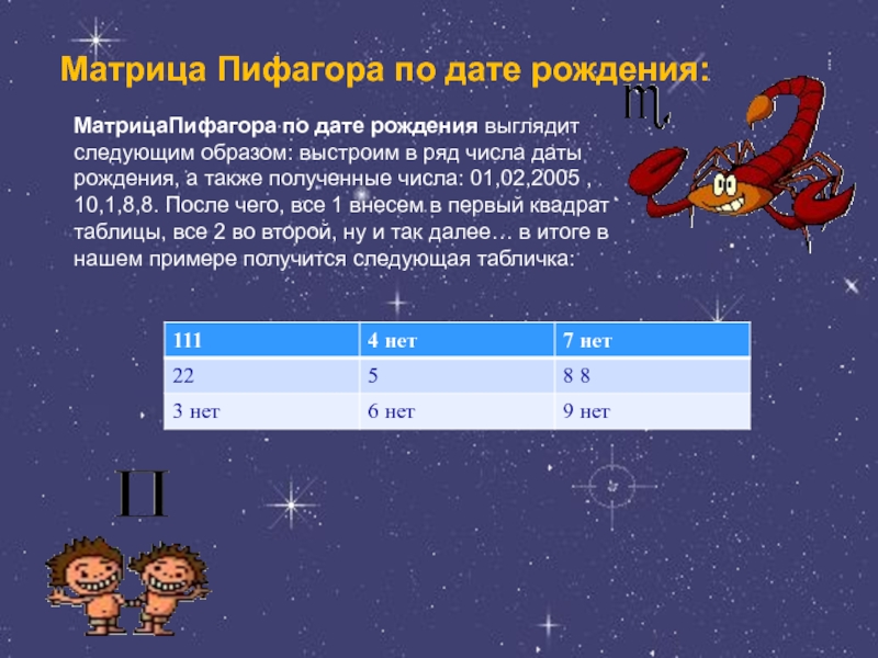 Матрица Пифагора по дате рождения: