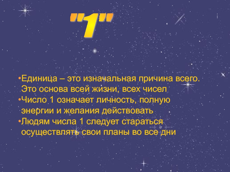 Единица – это изначальная причина всего. Это основа всей жизни,