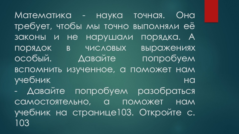 - Давайте попробуем разобраться самостоятельно, а поможет нам учебник на странице103. Откройте с. 103