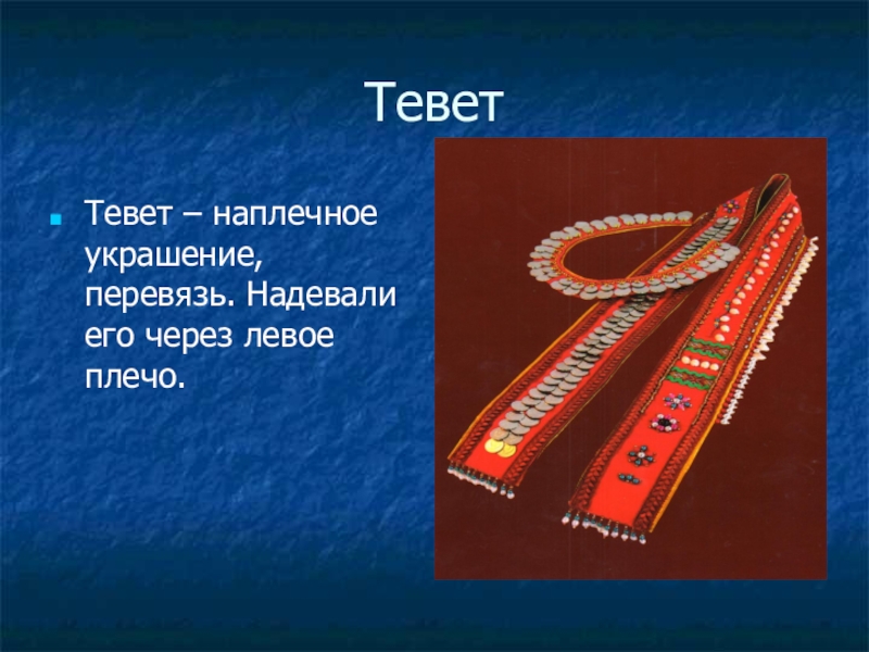 ТеветТевет – наплечное украшение, перевязь. Надевали его через левое плечо.