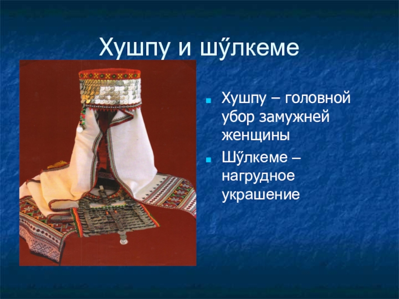 Хушпу и шӳлкемеХушпу – головной убор замужней женщиныШӳлкеме – нагрудное украшение