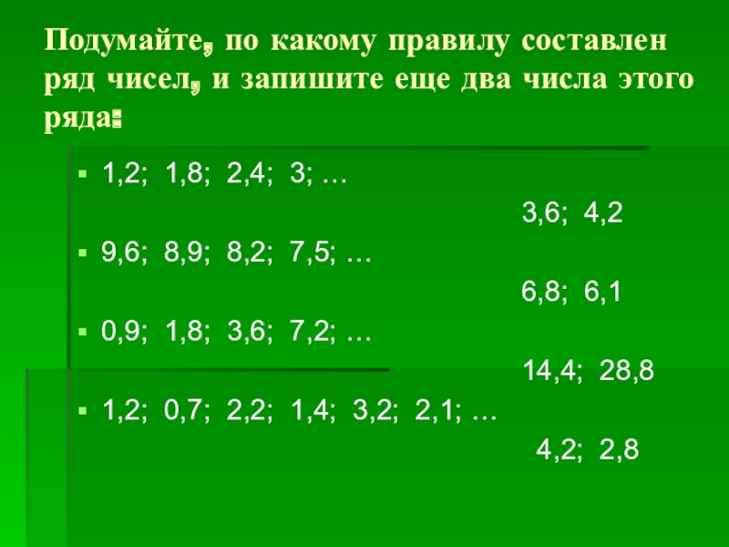 1,2; 1,8; 2,4; 3; …
